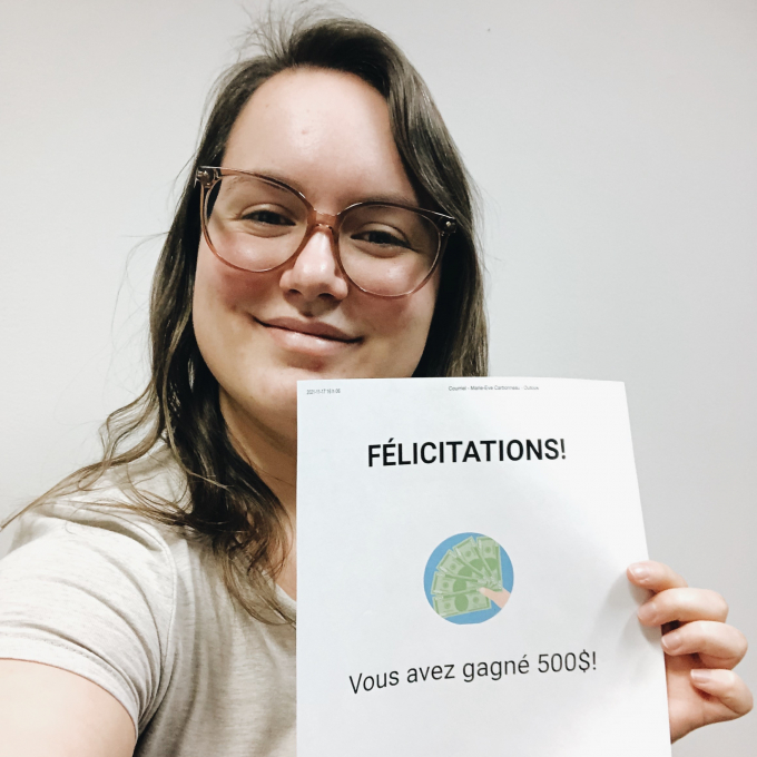 - 1 carte Visa prépayée de 500$, qui sera envoyée au gagnant au cours des semaines suivant le tirage.